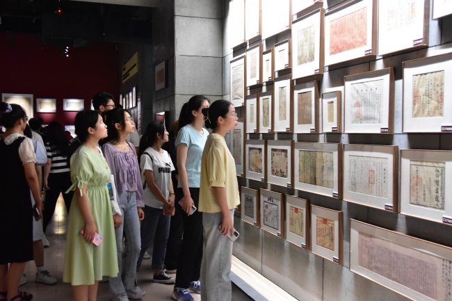 力明思政基地是在庆祝建党100周年之际创建,共设立21个展厅,珍藏了20余万件红色历史文献和文物,是全国民间最大的红色藏品基地之一。毕业生党员们随着讲解员依次参观,每一件展品都在用无声的方式演绎着中国共产党的光荣历史,让人深受震撼。大家纷纷表示将以此为契机,深入学习和发扬革命先烈对党忠贞不渝、追求理想、百折不挠的崇高品格,站好毕业离校前“最后一班岗”。参观结束后,全体党员面对鲜红的党旗,以饱满的精神、铿锵有力的声音庄严宣誓,重温入党誓词,接受精神洗礼。