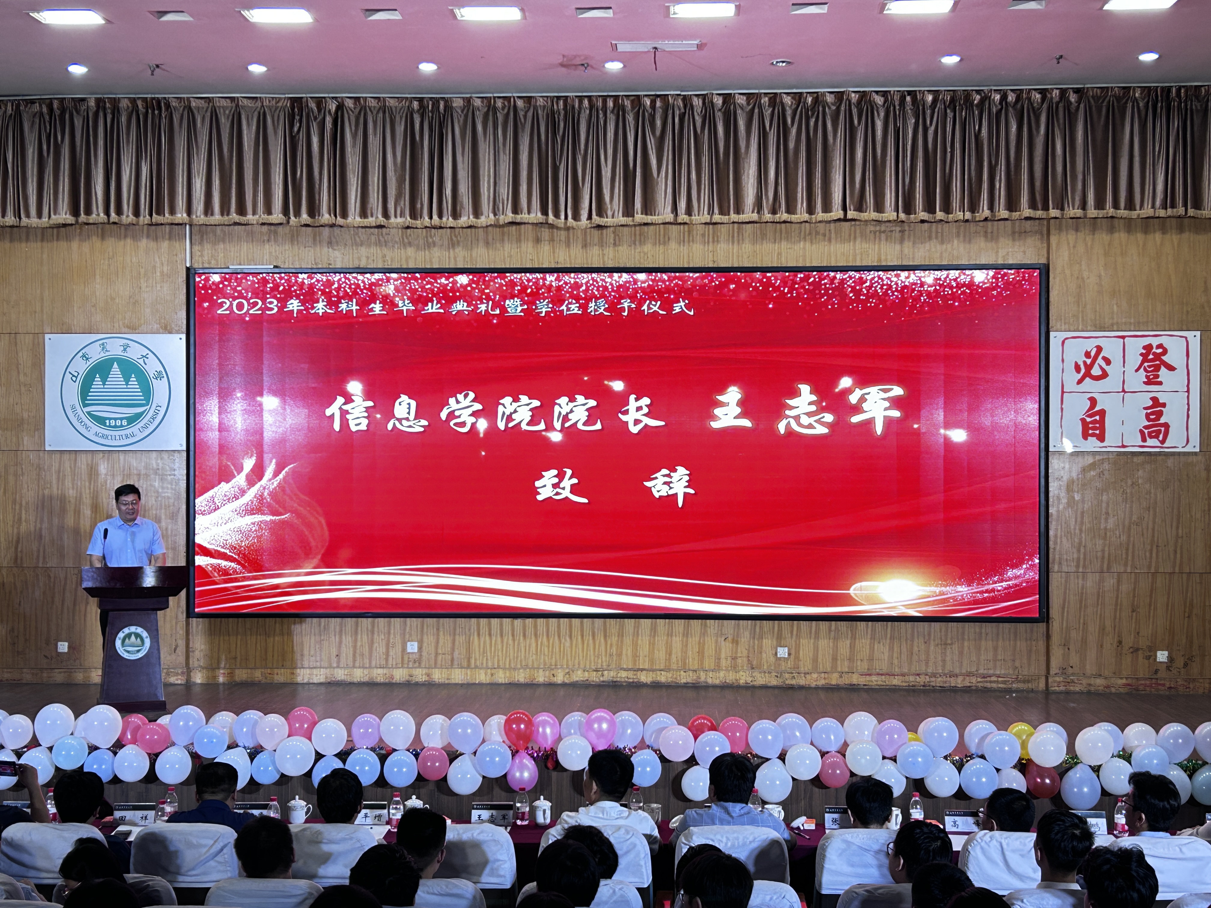 6月19日,信息学院于泮河校区第一学术报告厅举办2023届本科生毕业典礼暨学位授予仪式。学院领导、各系主任、教师代表、全体团委老师与2023届毕业生共同参与典礼仪式。