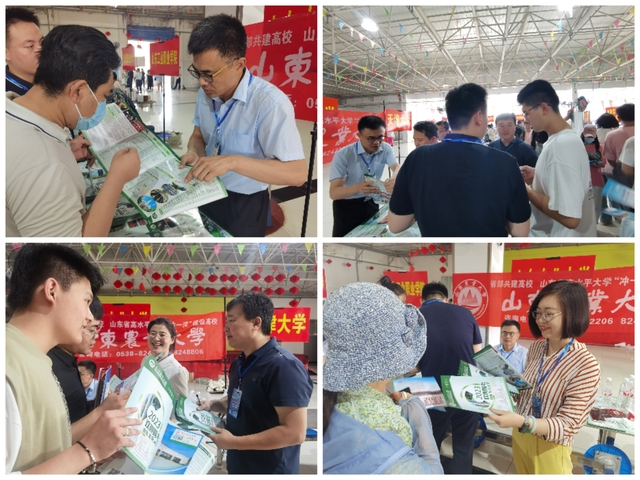 招生宣传咨询会现场,宣传队成员们克服高温炎热、雨水天气等困难,以高度的责任感和饱满的工作热情,向考生、家长介绍我校办学规模、专业建设、就业前景以及较为关注的录取分数位次、住宿条件等,让更多考生和家长了解学校的办学理念、办学实力。现场前来咨询的家长、考生络绎不绝,针对学校优势专业、公费农科生、中外合作办学等问题咨询火爆。在滕州实验高中招生咨询现场,一考生家长说到:“山东农业大学是百年老校,办学实力很强,相信孩子一定能在山东农业大学圆梦成才”。