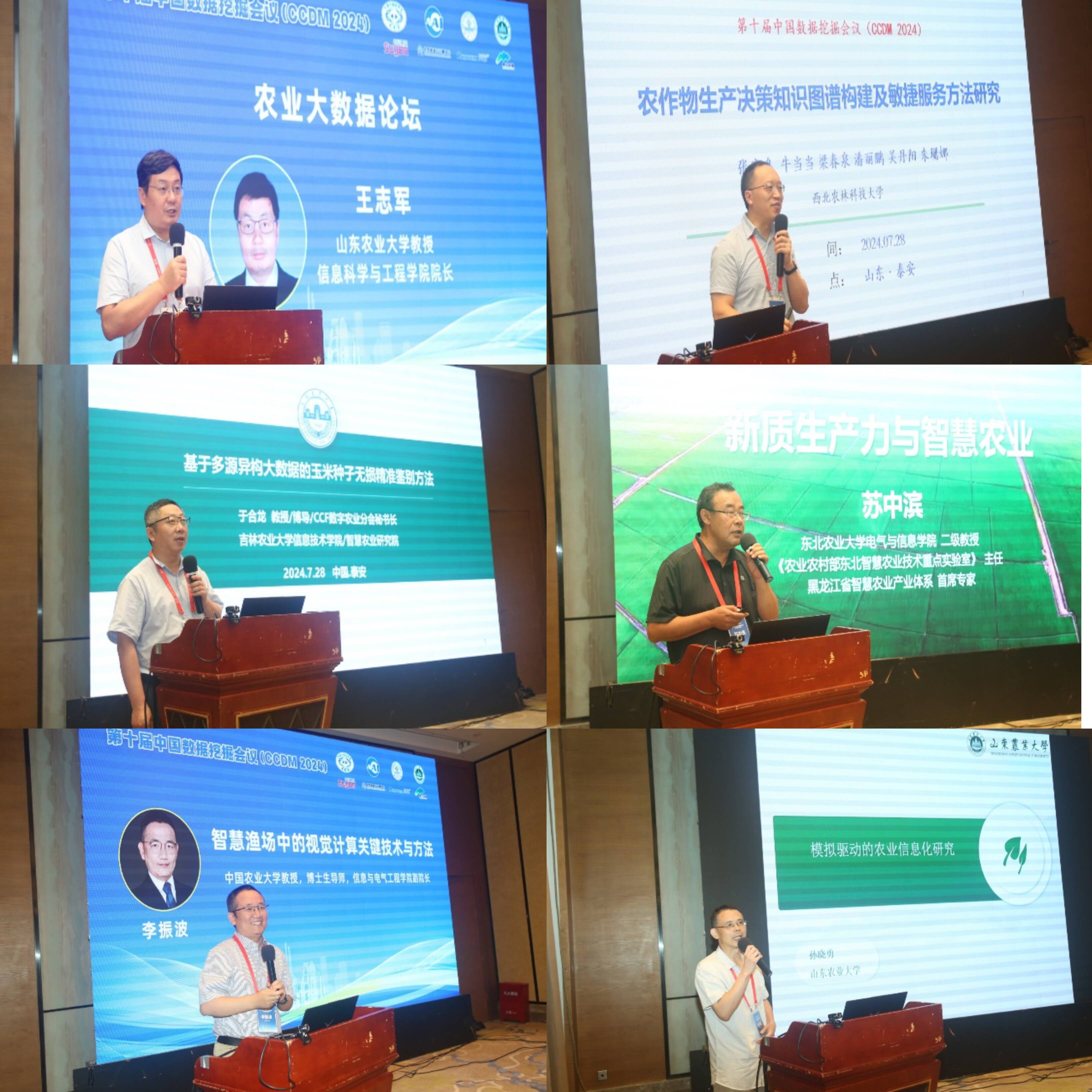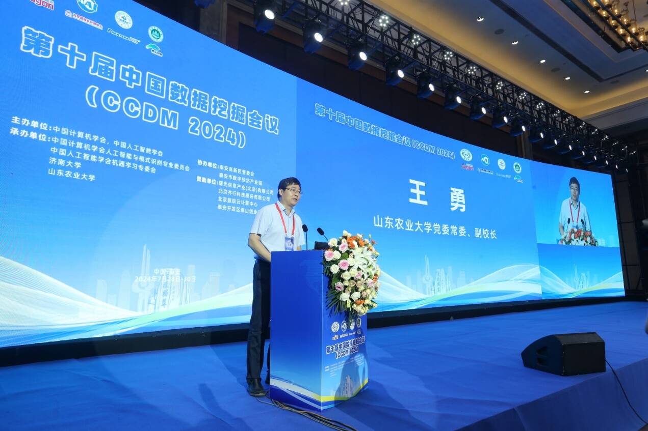 7月28日至7月30日,由学院承办的第十届中国数据挖掘会议(CCDM2024在泰安成功举行。会议汇聚了从事数据挖掘理论与应用研究领域的1000余名专家学者,共同探讨领域最新研究成果、创新思想与科技方法,探讨领域发展前景。学校党委常委、副校长王勇参会并在开幕式上致辞。王勇在致辞中指出:学校聚焦农业领域,深入开展农业数据挖掘及分析工作,率先成立国内首个农业大数据研究中心,开启了国内农业大数据挖掘研究的先河,建成渤海粮仓大数据平台,助力环渤海粮食产量提升智慧水利、智慧植保、智慧农场等研究也取得丰硕成果,为提升农业生产效率与质量注入了强大动能。