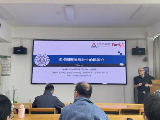 陈松灿教授以“多视图聚类互补性的再探究”为主题展开报告,他紧扣“如何确保视图间的一致性与互补性”多视图学习的核心问题,深入浅出地分享了近期取得的最新研究成果。王魏教授带来了题为“机器学习范式与泛化性能”的学术报告,他紧密结合课题组近期研究进展,对新型机器学习范式的相关理论和应用进行了全面而深入的阐述,并深入分析其在指导机器学习算法设计等方面的重要意义。