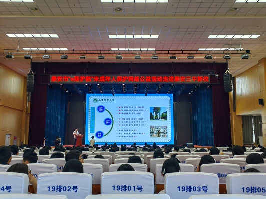 4月26日,由信息学院、泰安市委网信办主办的“e路护航”未成年人保护网络社会公益系列活动第二站在山东省泰安第三中学新校正式启动。本次活动覆盖三中全部年级1700余名学生,采用“专业教师+学生骨干”双讲师模式,由物联网工程专业主任孙博副教授带领41名优秀学生代表组成宣讲团,深入课堂开展专题教育和招生宣讲。