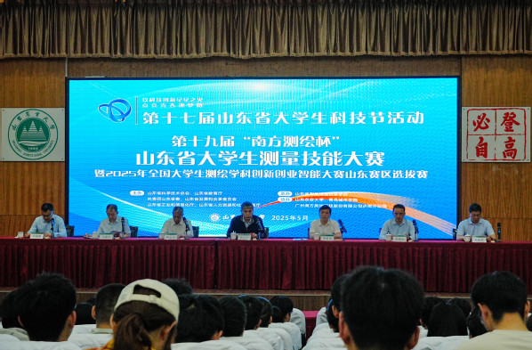 5月17日,由山东省科学技术协会、山东省教育厅等六部门联合主办,山东省测绘地理信息学会协办的第十七届山东省大学生科技节活动--第十九届“南方测绘杯”山东省大学生测量技能大赛暨2025年全国大学生测绘学科创新创业大赛山东赛区选拔赛在我校成功举办,来自全省41所高校的1328名学生报名参赛,这也是我校第三次承办该项赛事。校党委常委、副校长周玉玺,山东省测绘地理信息学会副理事长李宗宝、秘书长钟全宝,山东省国土测绘院研究员王福杰,广州南方测绘科技股份有限公司济南分公司总经理成德桂、信息科学与工程学院院长王志军,以及全体裁判员和南方公司技术人员出席开幕式。开幕式由信息学院党委副书记刘成峰主持。