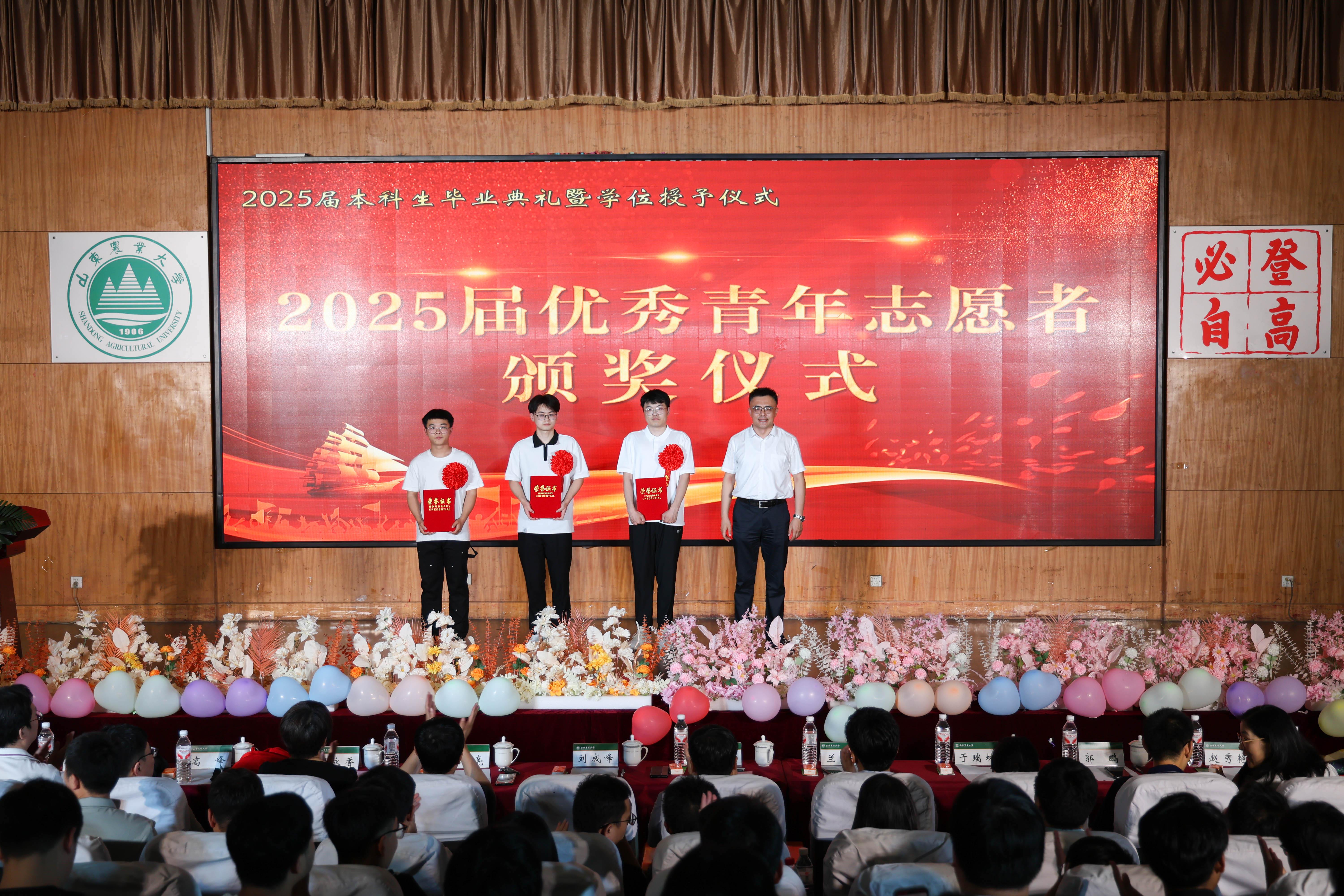 院长王志军为校友联络员颁发聘书,党委副书记刘成峰为投身西部扎根基层的优秀青年志愿者颁发证书。