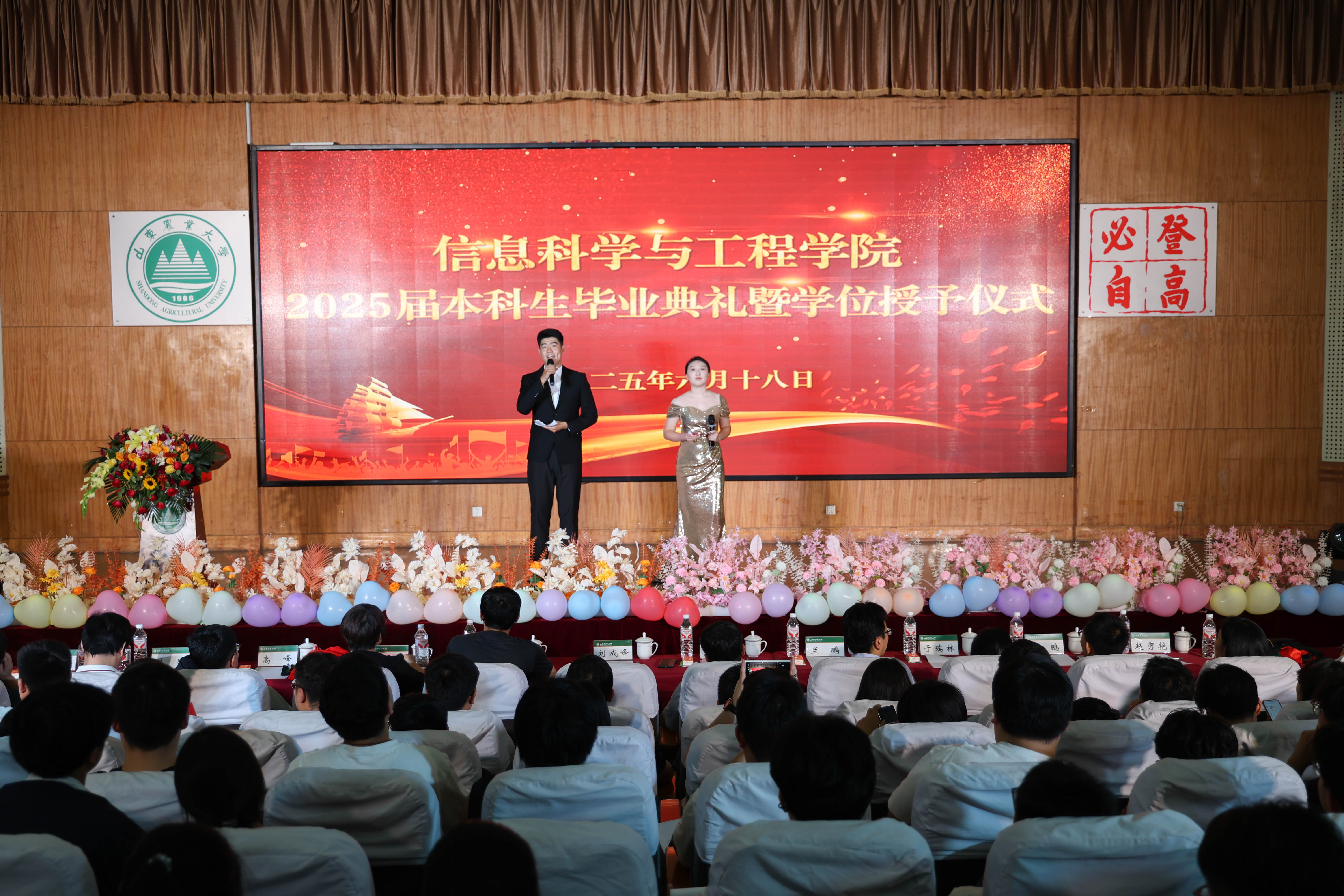 6月18日,信息学院在泮河校区第一学术报告厅举行2025届本科生毕业典礼暨学位授予仪式。学院领导班子成员、各党支部书记、各系主任、中心主任、专业主任、教师代表、院办老师、团委老师等出席典礼仪式。