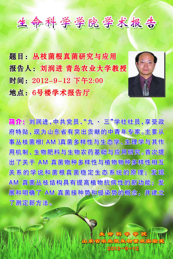 生科院:青岛农业大学刘润进教授学术报告