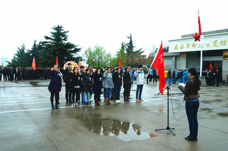 上午九点,同学们怀着对英雄们的无限崇敬来到泰安革命烈士陵园。在烈士纪念碑前,研会全体成员整齐列队,奏唱国歌。随后,大家肃立脱帽向革命先烈默哀一分钟,寄托哀思,深切悼念英勇牺牲的革命烈士。研究生代表向革命烈士敬献花圈后,在校研究生会主席吕洁的带领下,同学们举起右手,宣读悼念誓词:继承革命先烈遗志,发扬艰苦奋斗精神;热爱社会主义祖国,拥护中国共产党的领导;勤勉自励,奋发有为,不负人民厚望! 最后,同学们前往烈士陵园,在庄严肃穆的气氛中,同学们排成整齐的队列在革命先烈的墓前敬献小白花,以此来慰藉那些不朽的英魂。