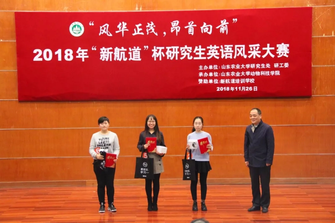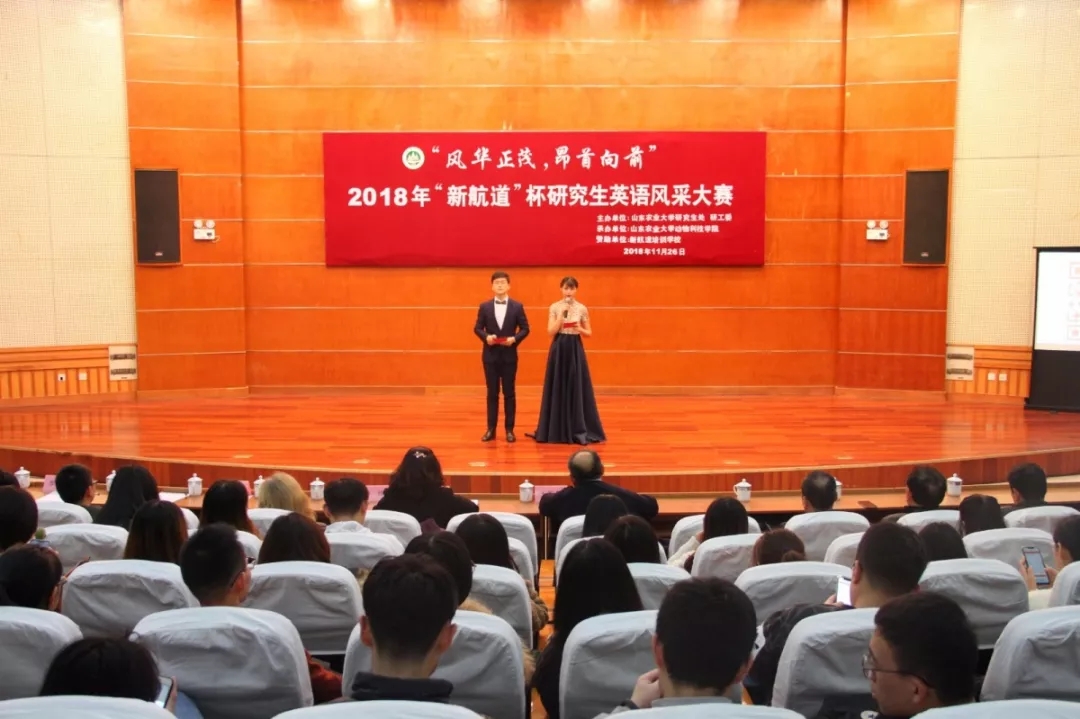 11月26日晚7点,由校研究生处、研工委主办,动物科技学院承办的“风华正茂,昂首向前”——2018年“新航道”杯研究生英语风采大赛决赛在文理大楼学术报告厅成功举办。副校长王振林老师,研究生处及各学院老师、研究生代表共同领略了这场专业的英语盛宴。
