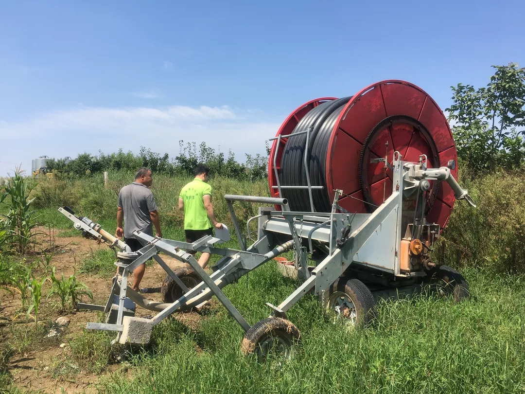 团队成员参观了卷盘式喷灌机,该设备结构简单、造价低、使用维护方便,具有省水省工省地效益,目前已经广泛应用于小麦、玉米等大田作物的规模化经营中。