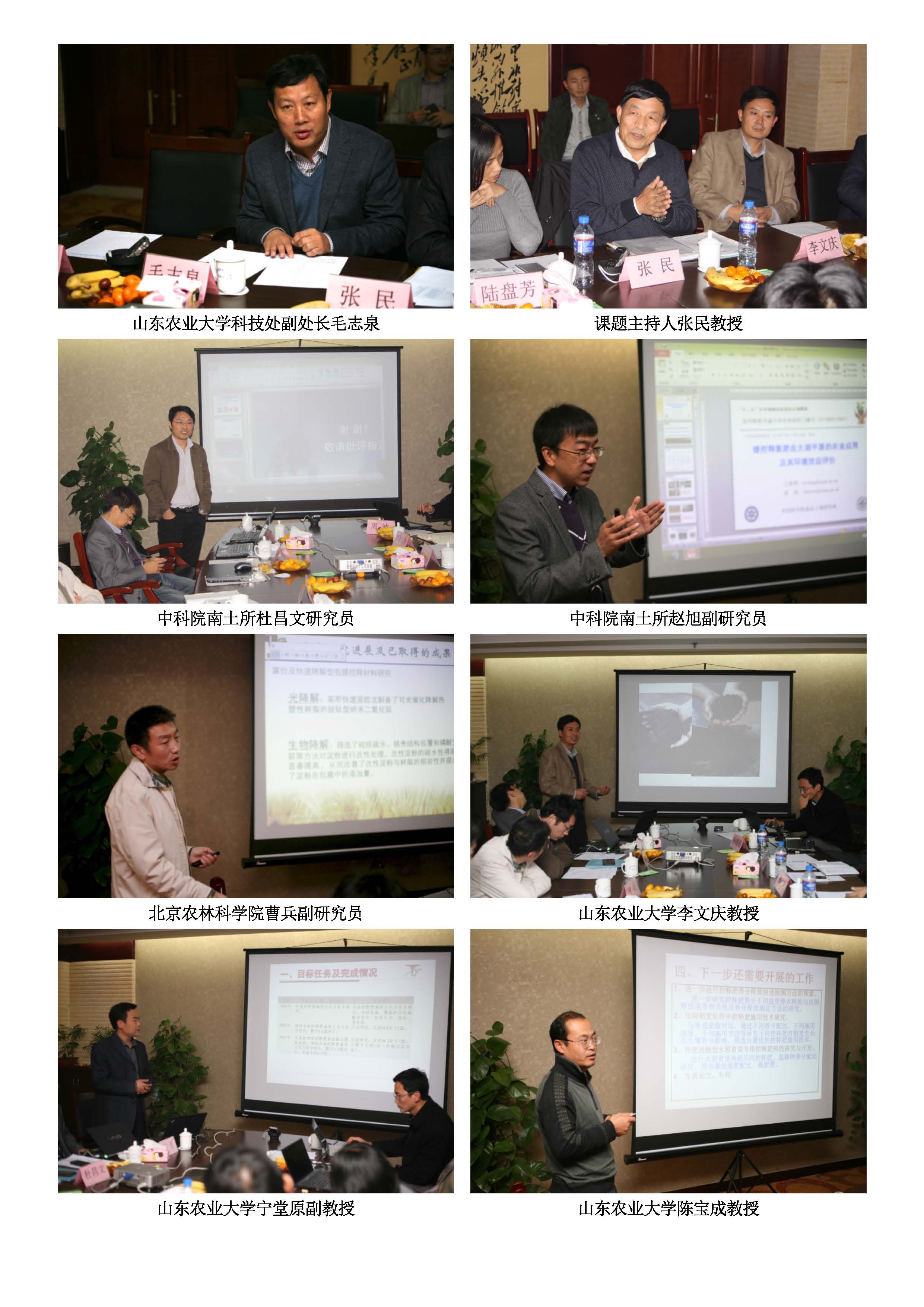 2013年11月5日至6日,“十二五”国家科技支撑计划课题“缓控释肥关键技术研究与提升”课题组在山东省泰安市召开中期工作总结与促进会。课题主持人山东农业大学张民教授、中科院南土所杜昌文、赵旭研究员、北京农林科学院曹兵研究员、山东农大肥业技术总监陈士更、烟台绿源有机肥公司董事长杜福德、嘉兴浙华农丝技术开发有限公司副总张永江以及山东农大周波博士等30余位研究骨干参加了本次会议。山东农业大学科技处毛志泉副处长和资环学院副院长诸葛玉平教授代表课题承担单位山东农业大学出席了本次会议。毛志泉副处长主持会议开幕式并向与会代表致辞,感谢合作单位及研究人员的辛勤努力和精诚合作。