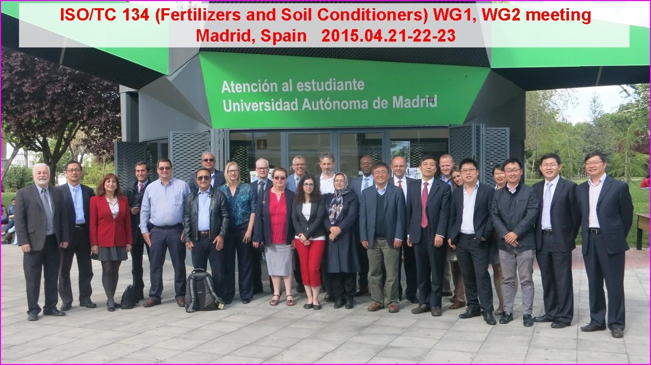 应西班牙国家标准化委员会和ISO/TC 134 国际标准化委员会肥料和土壤调理剂标准化技术委员会邀请,国家工程实验室常务副主任张民教授作为国际标准化委员会肥料和土壤调理剂标准化技术委员会委员和工作组(ISO/TC-134-WG1,WG2)专家,参加了2015年4月21日至4月25日在西班牙首都马德里召开的国际标准化委员会肥料与土壤调理剂技术委员会(ISO/TC 134,Fertilizersand Soil Conditioners)第一工作组(WG1:Inorganic or mineral fertilizers)和第二工作组(WG2:Organic fertilizers and soil improvers)专家会议。