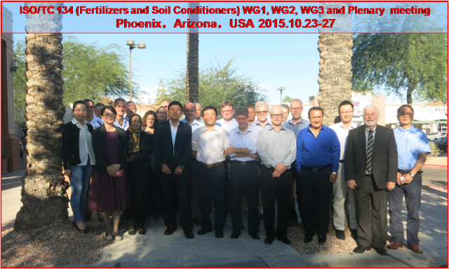 2015年10月23日至10月27日,在美国亚利桑那州凤凰城召开了国际标准化委员会肥料与土壤调理剂技术委员会(ISO/TC 134,Fertilizers and Soil Conditioners)第1工作组(WG1:Inorganic or mineral fertilizers), 第2工作组(WG2:Organic fertilizers and soil improvers), 第3工作组(WG3:Vocabulary, marking, sampling, and statistics)专家会议和土壤调理剂标准化技术委员会全体会议(ISO/TC-134 Plenary meeting)。实验室常务副主任张民教授作为国际标准化委员会肥料和土壤调理剂标准化技术委员会委员和工作组(ISO/TC-134-WG1,WG2,WG3)专家,应美国国家标准化委员会ANSI(American National Standards Institute)和国际标准化委员会肥料和土壤调理剂标准化技术委员会ISO/TC 134邀请,参加了此次会议。
