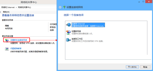 最后我们说说创建新的网络,对普通用户来说一般就是新建宽带连接。点击“更改网络设置”下的“设置新的连接或网络”进入创建流程。
