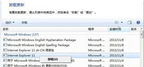 3.找到"nternet Explorer 11",右击卸载;
