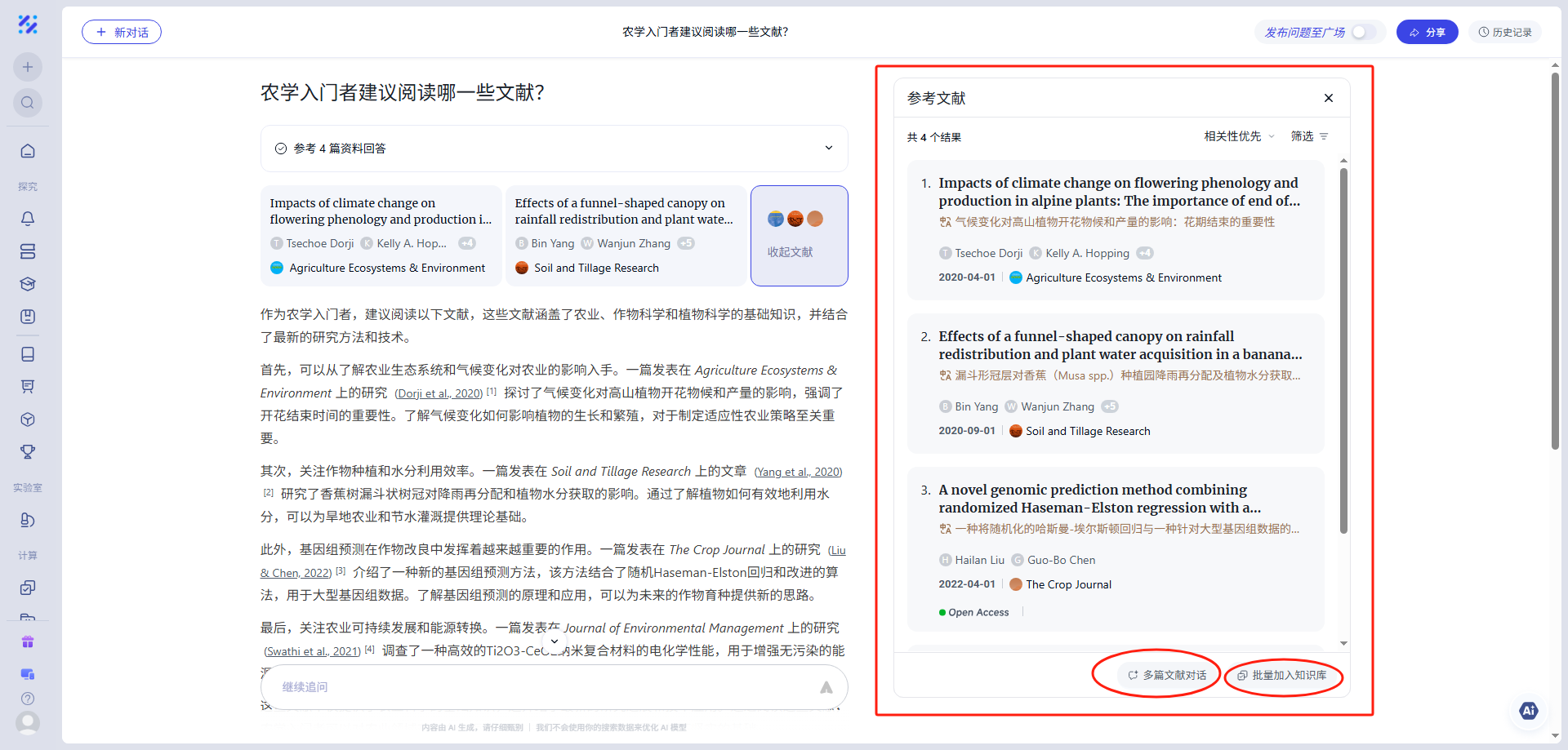 ④支持批量文献回答,站内资源直连,在用户输入过程中推荐站内其他相关内容