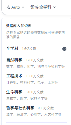 ③支持切换多种先进大模型,同时具备多模态能力,可输入图片/附件进行问答,回答内容关联学术图片,亦可切换问题领域,获得更快速更准确的答案