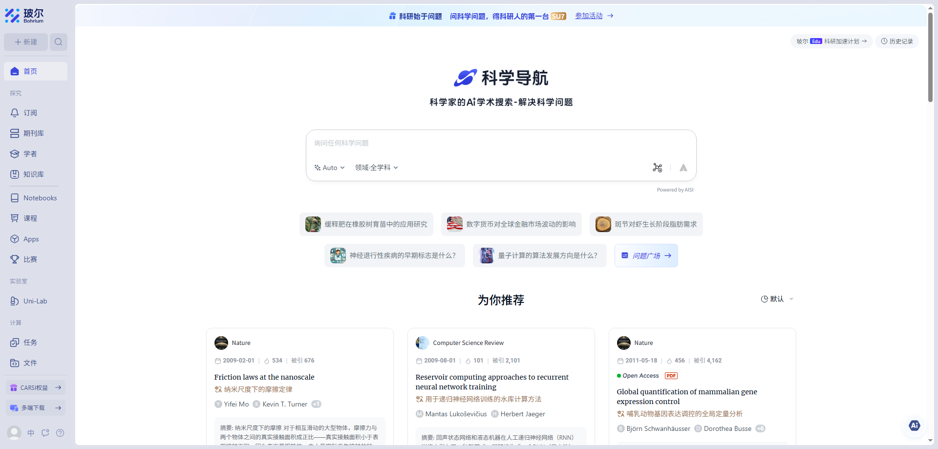 1.打开玻尔科研空间站网站(https://www.bohrium.com/)