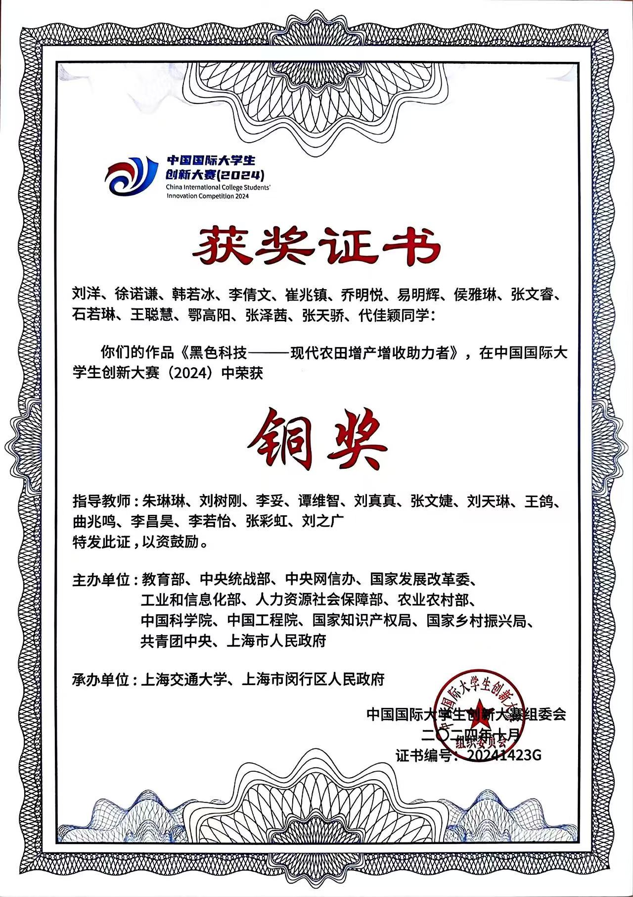 13 | 刘洋等 | 202410 | 国家级 铜 奖 | 教育部等 | |