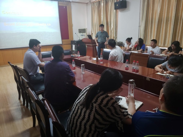报告会主要围绕氮硫沉降会造成土壤酸化,森林退化,水体富营养化等主要环境问题展开,张教授特地结合加拿大西部的酸雨沉降问题向大家展示研究氮、硫的必要性。同时,他具体讲解了选取在油沙地区进行沉降实验的原因,并向与会人员详细介绍了他所在团队采用人工模拟实验模拟自然条件下的氮硫沉降过程,并进行了为期11年的跟踪分析历程。张教授的精彩报告引起师生极大兴趣,现场进行了热烈的学术交流,与会师生受益匪浅。