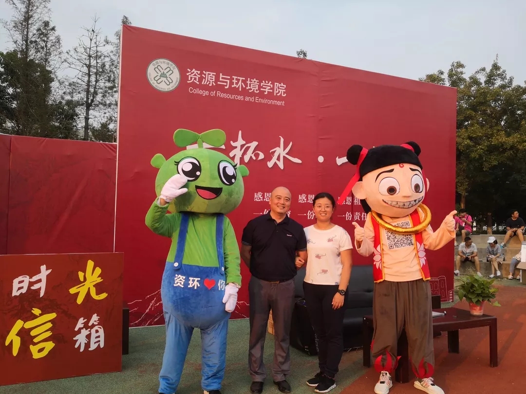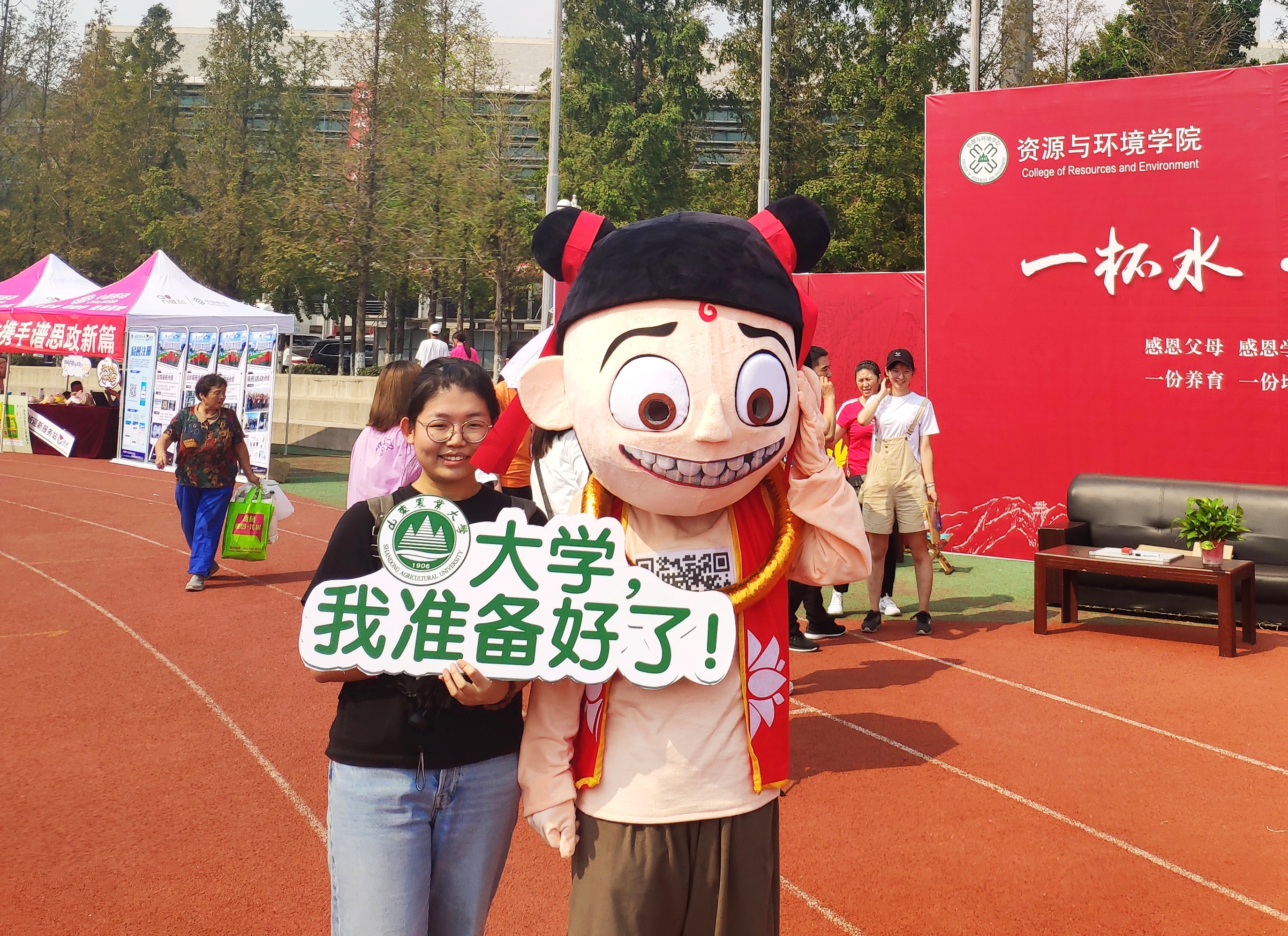 别处心裁,资环一家。资环学院迎新现场伴随着两只布玩偶:学院吉祥物环宝宝和动画主角哪吒,表达了学院对新生的殷切期盼:既体现环保理念也鼓励新生做勇于争先的资环人。现场新生纷纷与布偶合影互动,有新生说:“来到这里,感觉到处新奇而热烈,青春奔放的感觉”。