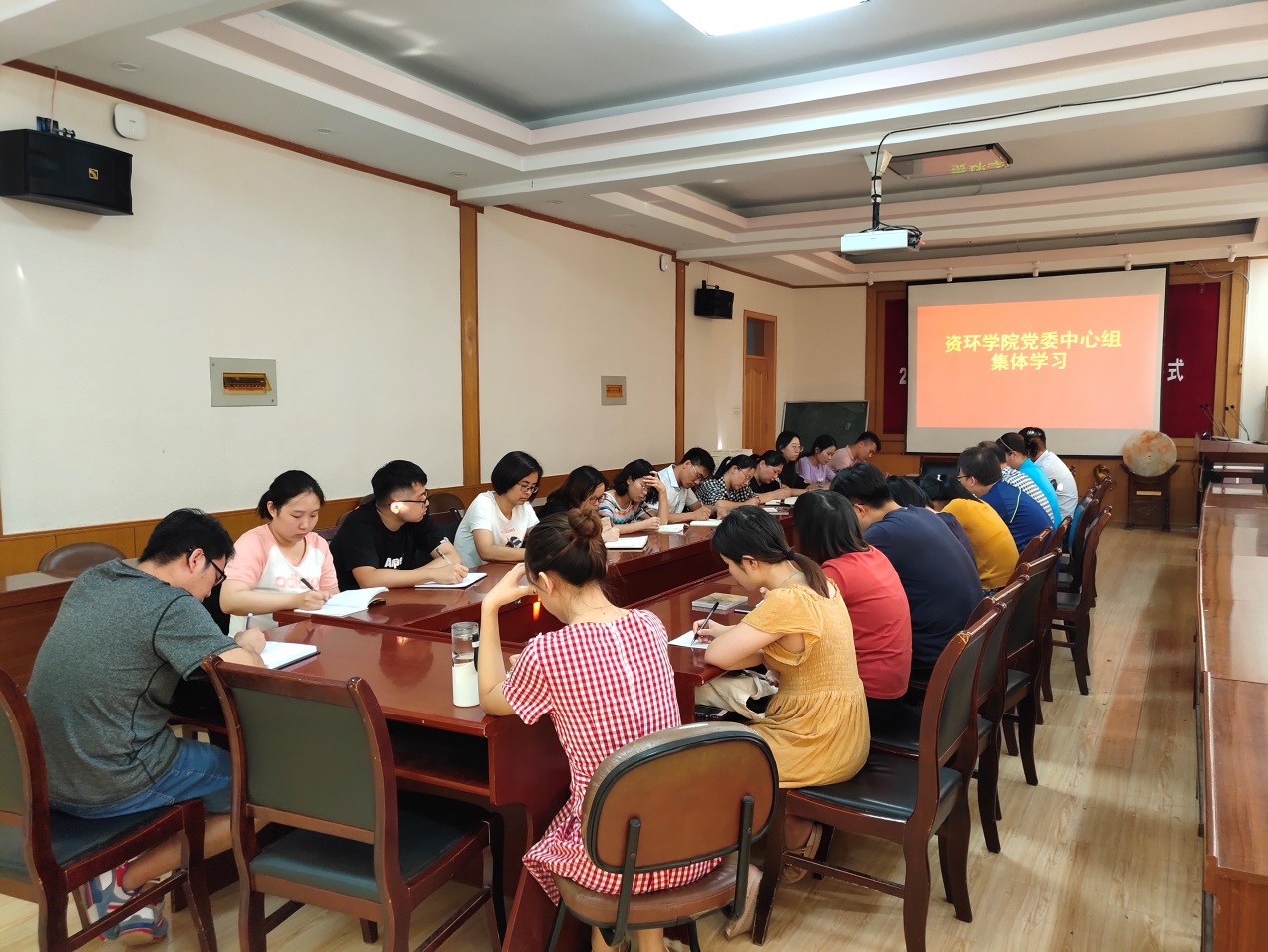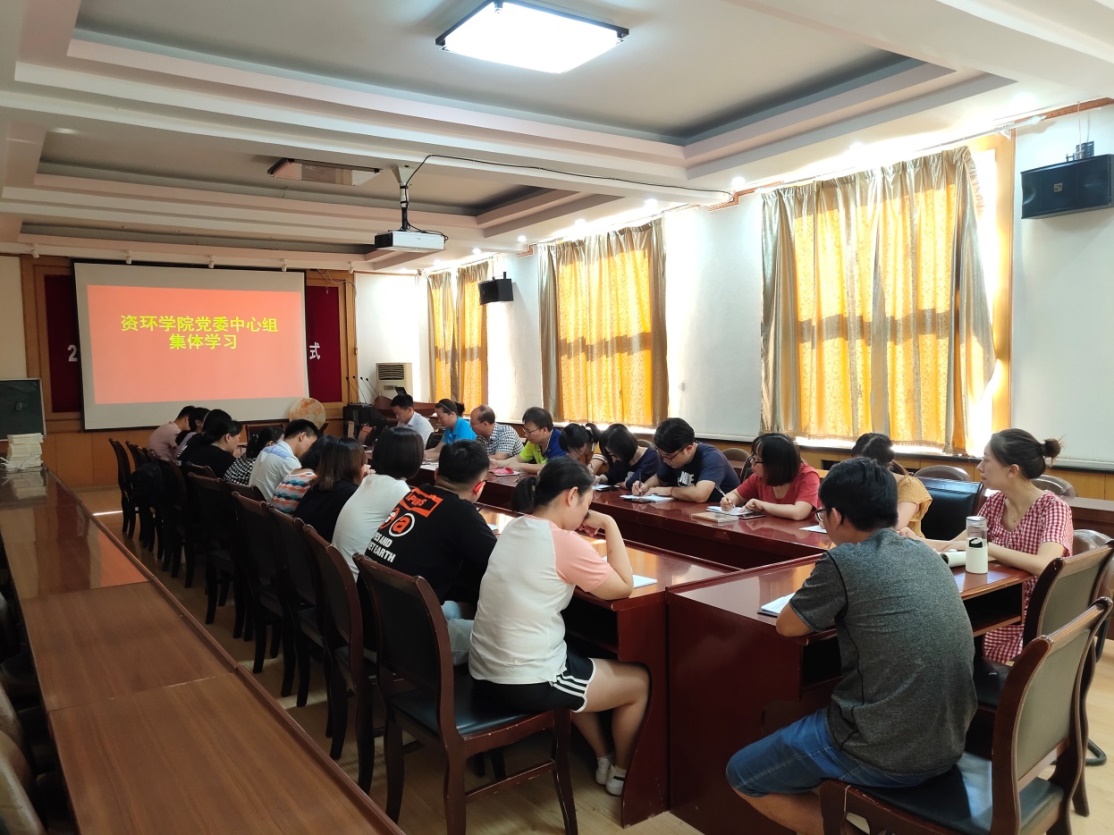 8月31日下午,资环学院党委中心组在3号楼320室进行中美贸易摩擦问题专题集体学习。党委书记朱宝库主持会议,党委委员、各支部书记、支部委员参加会议。