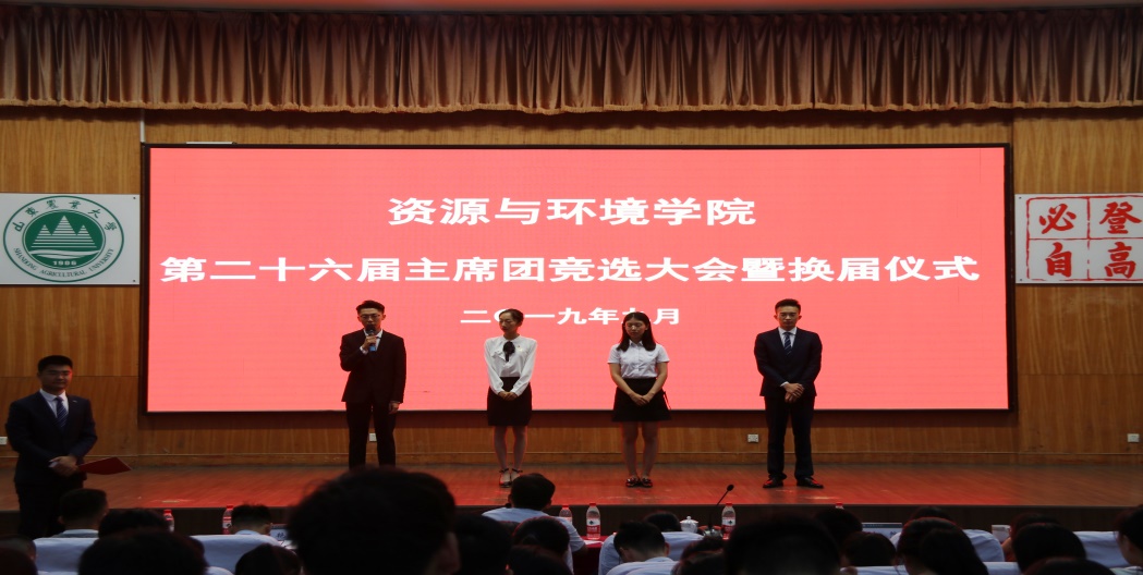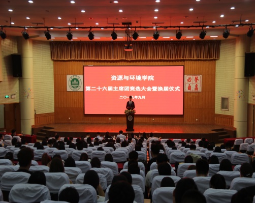 为学生会更好服务师生,做好新老学生干部传承工作,为学生会后续发展注入更多新鲜血液,9月10日,资环学院于南校区第一学术报告厅举办第二十六届主席团竞选暨换届大会。资环学院党委副书记薛松、团委书记刘敏,团委辅导员李娜、王亚南、刘然、王艳廷、兼职辅导员候善民、学生会成员及各班级代表出席此次大会。学生会主席马希贤主持此次会议。