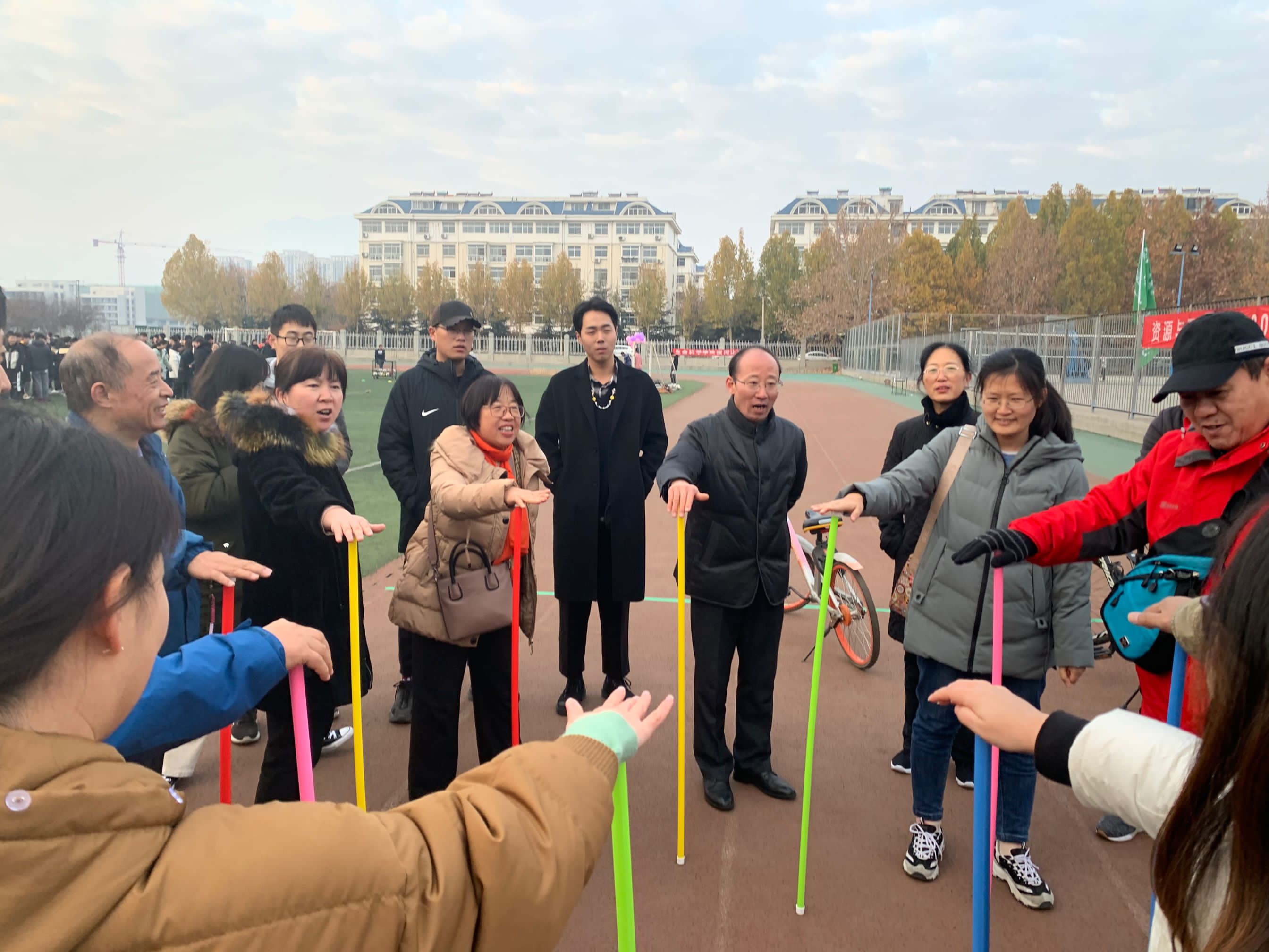运动会伊始,党委书记朱宝库发表讲话,他提出,参赛选手要遵循“友谊第一,比赛第二”的原则,以良好的精气神积极投入各项比赛,要坚持学习工作之余走出教室,走下网络,走向操场,在挥洒汗水中强健体魄。紧接着,师生便投入到火热有趣的运动中,本次比赛共设有七个项目,分别为慢骑自行车、排球赛、足球绕杆射门、集体跳大绳、拔河、踢毽子、不倒森林,各个项目均各具特色,以全新的玩法,打破常规的比赛模式吸引了大批师生参与。在最后进行的拔河比赛中,由朱宝库书记带领的教职工队齐心协力,以势不可挡之势一举战胜学生代表队,赢得场上阵阵掌声,充分展示出教师们的阳光活力。
