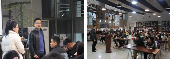 为提高学生干部工作能力与工作效率,提升创业团队创新创业意识,1223日晚,资环学院于南校区七色土创客驿站举办创业论坛。辅导员王艳廷主持会议,2008级资环校友郭海涛作了“创业之路:迷茫向自信转变”主题报告,院学生会主要学生干部、创新创业团队负责人参加报告会。