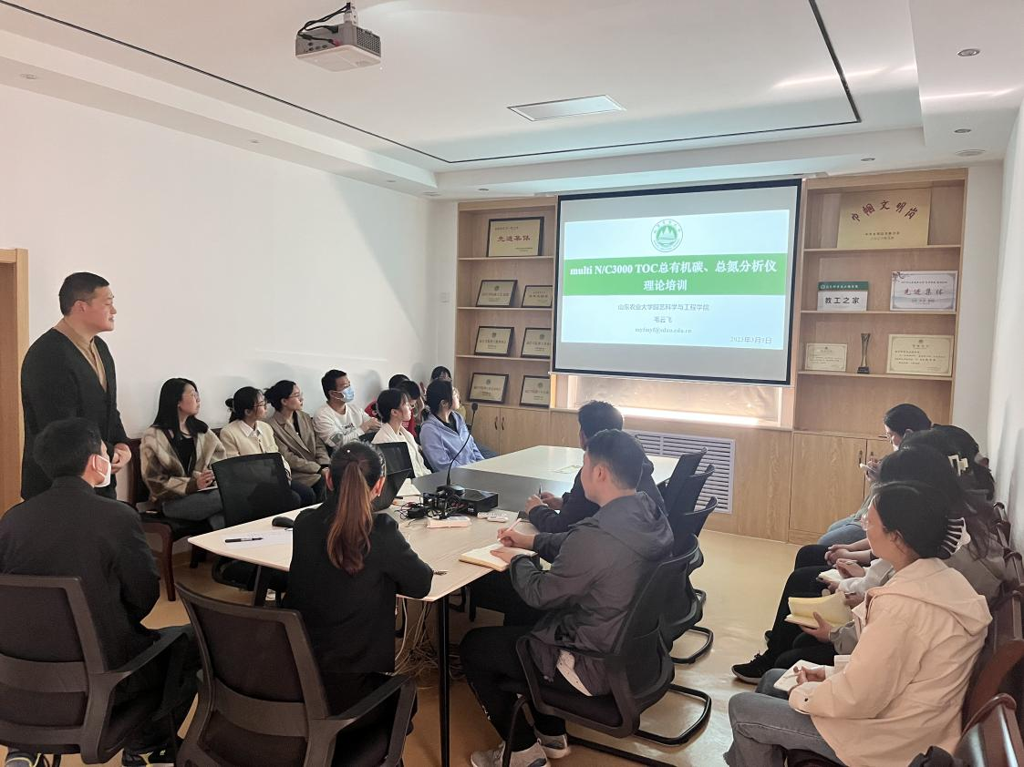 2023年3月9日,园艺学院实验中心在10号楼201举行了TOC总有机碳/总氮分析仪培训会,本次会议由王超老师主持,吕艳辉老师、陈晓璐老师和各实验室选派的16名研究生代表参加了此次培训,并特别邀请毛云飞老师作为此次培训的特邀技术指导,为大家从理论和操作两方面进行讲解。理论培训包括检测项目、硬件、原理和检测方法4部分,检测项目主要介绍了TOC总有机碳/总氮分析仪主要测定指标,硬件部分主要介绍了仪器的配件及组成,原理主要讲解该仪器的工作原理及工作方法,检测方法主要是从理论方面向大家简单演示仪器使用方法。