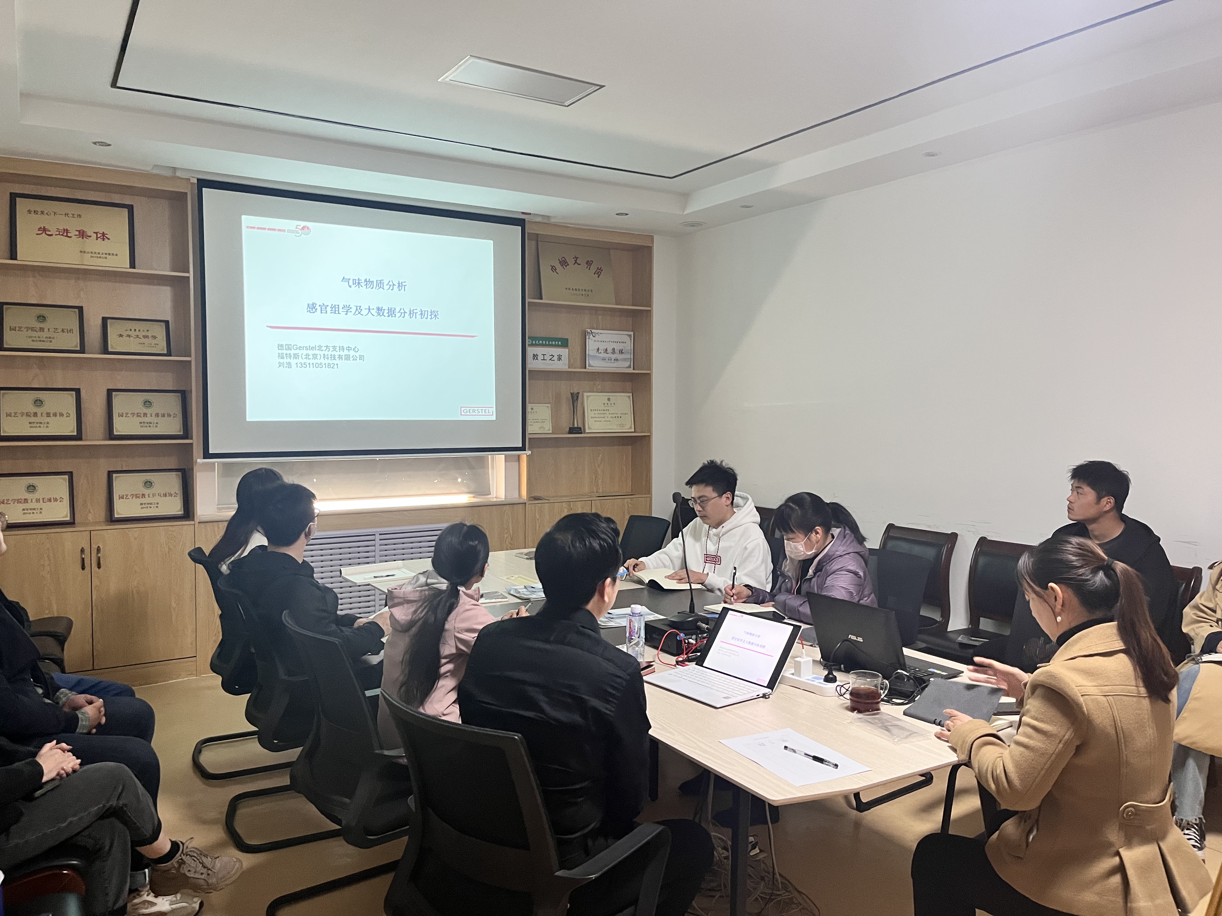 培训会上,刘浩工程师首先从不同的样品前处理原理、处理方法,讲到嗅闻仪的数据和气质数据解析处理软件的基本使用,系统地向老师和同学们讲解了气相色谱-质谱仪/嗅闻仪的相关理论知识,期间师生们积极向工程师提出疑问,工程师认真听取并耐心做出解答,对仪器设备的使用和可能存在的问题有了更深入的了解。随后,工程师及培训人员一行人来到421进行实操学习,按照规范的步骤流程进行样品前处理,进样后嗅闻人员对嗅闻仪流出的组分进行嗅闻,记录相应化合物的嗅闻时间和气味特性,并与纯化合物的出峰时间和气味特性以及文献中相应化合物的气味特性进行比较。